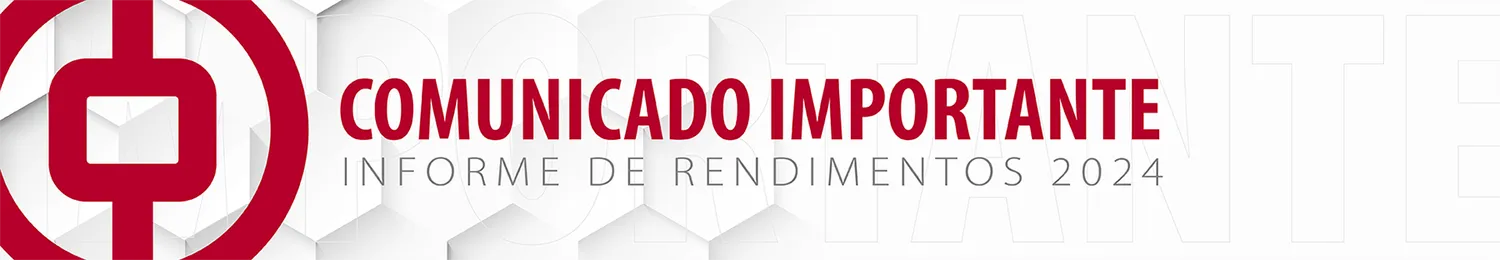 Prezado cliente,Informamos que os Informes de Rendimentos publicados até a data de 07 de março de 2024 estão incompletos. O Informe de Rendimentos, contendo todas as informações, já está disponível para consulta em seu Internet Banking. No caso de dúvidas, você poderá entrar em contato por meio de nossos canais de atendimento. |